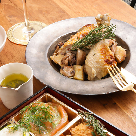 【Monthly collab box】季節限定 北フランスの冬至 9品オードブル・メイン料理「骨付き鶏もも肉のグリエ グランメール風」・ドルチェセット