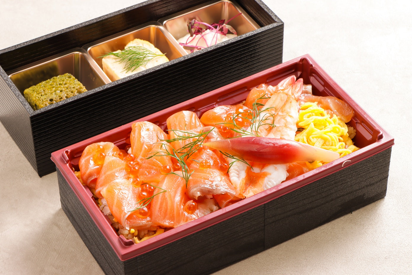 【to-un-beハーブマリネタスマニアサーモン バルサミコちらし寿司弁当(3種のミニ小鉢付き)2,300円】