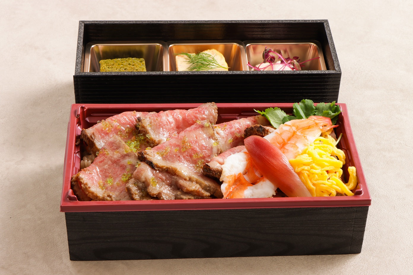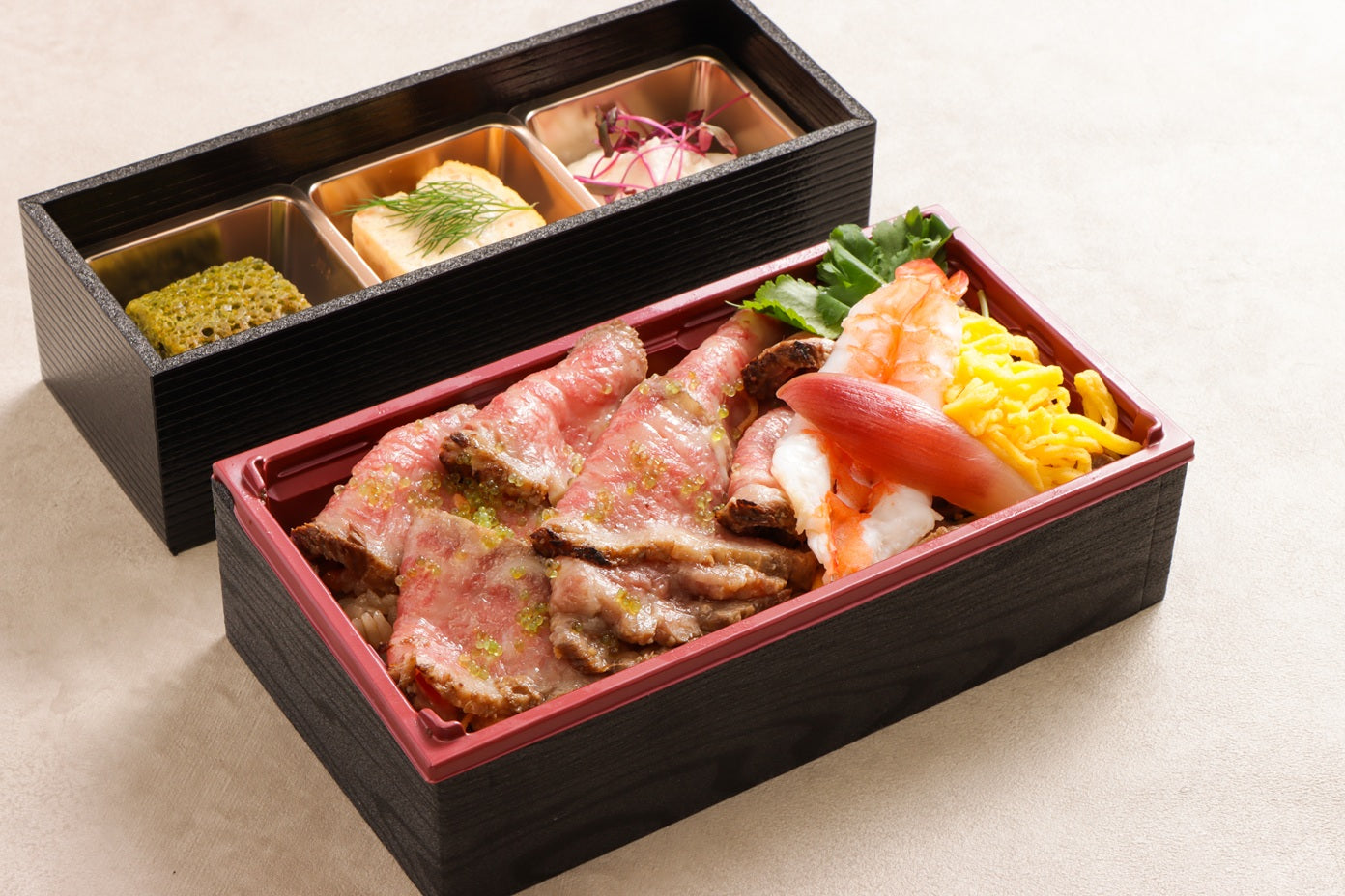 和牛の旨みからデザートまでお楽しみいただける贅沢なお弁当です。