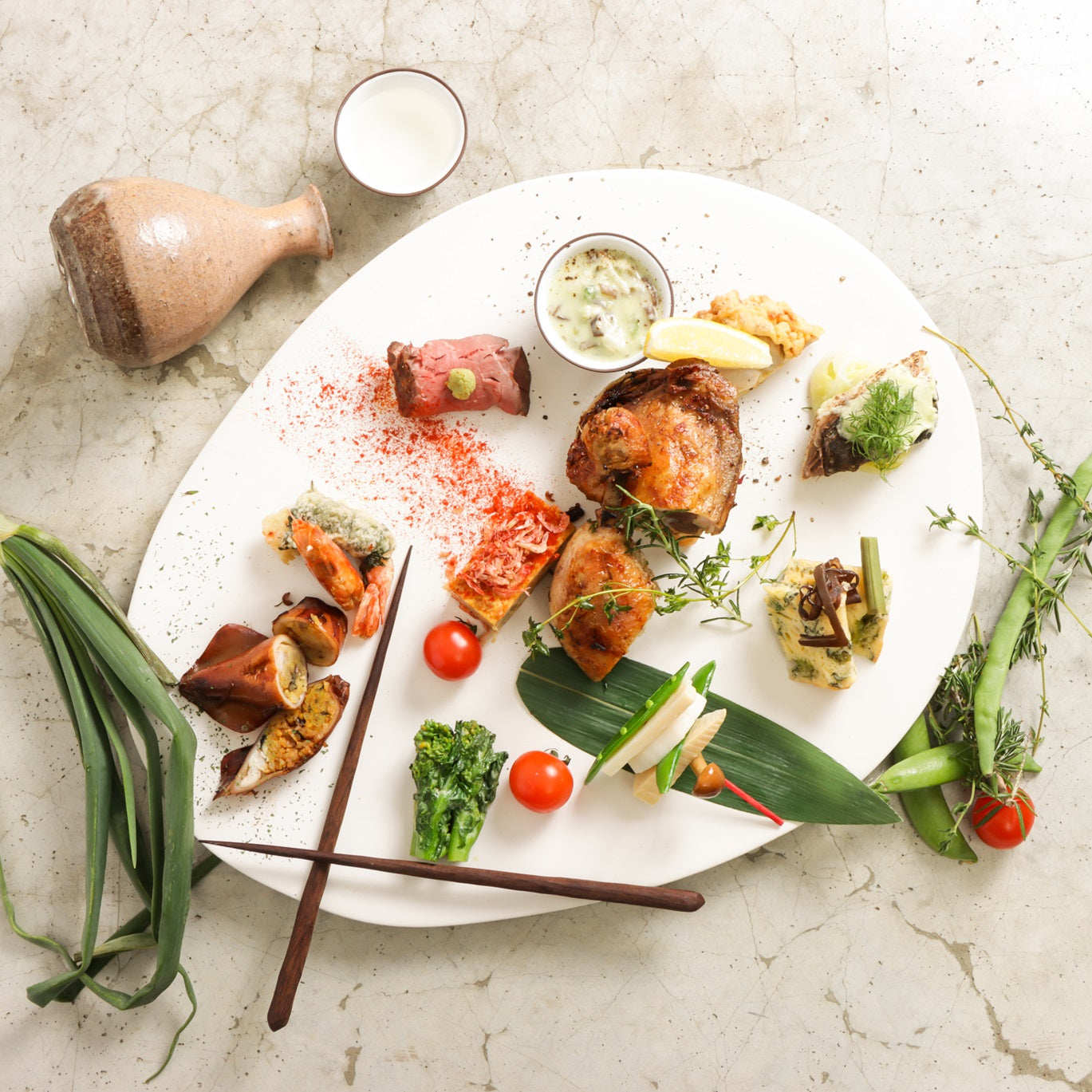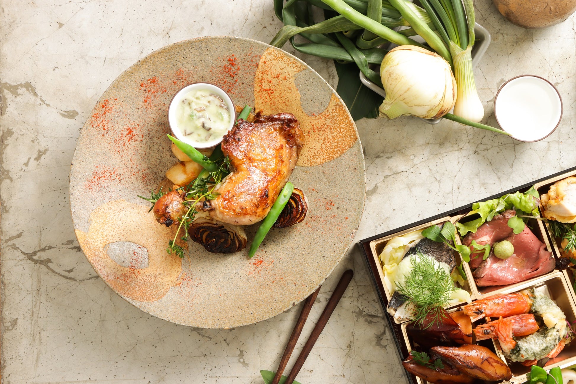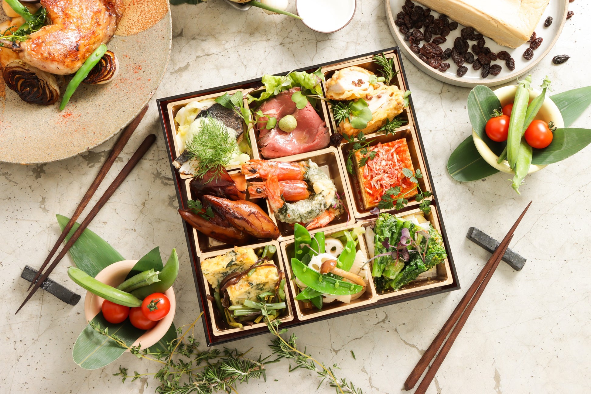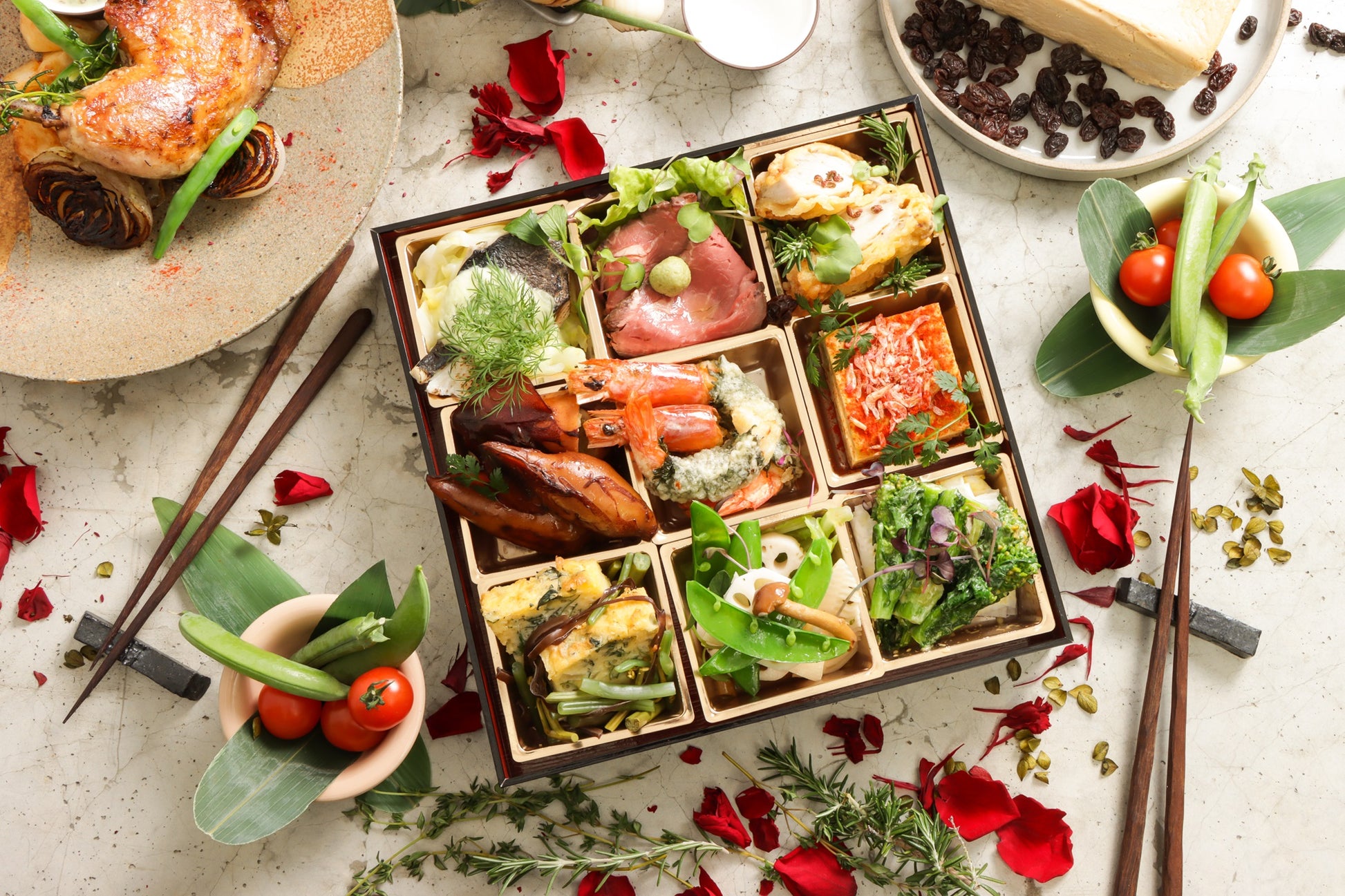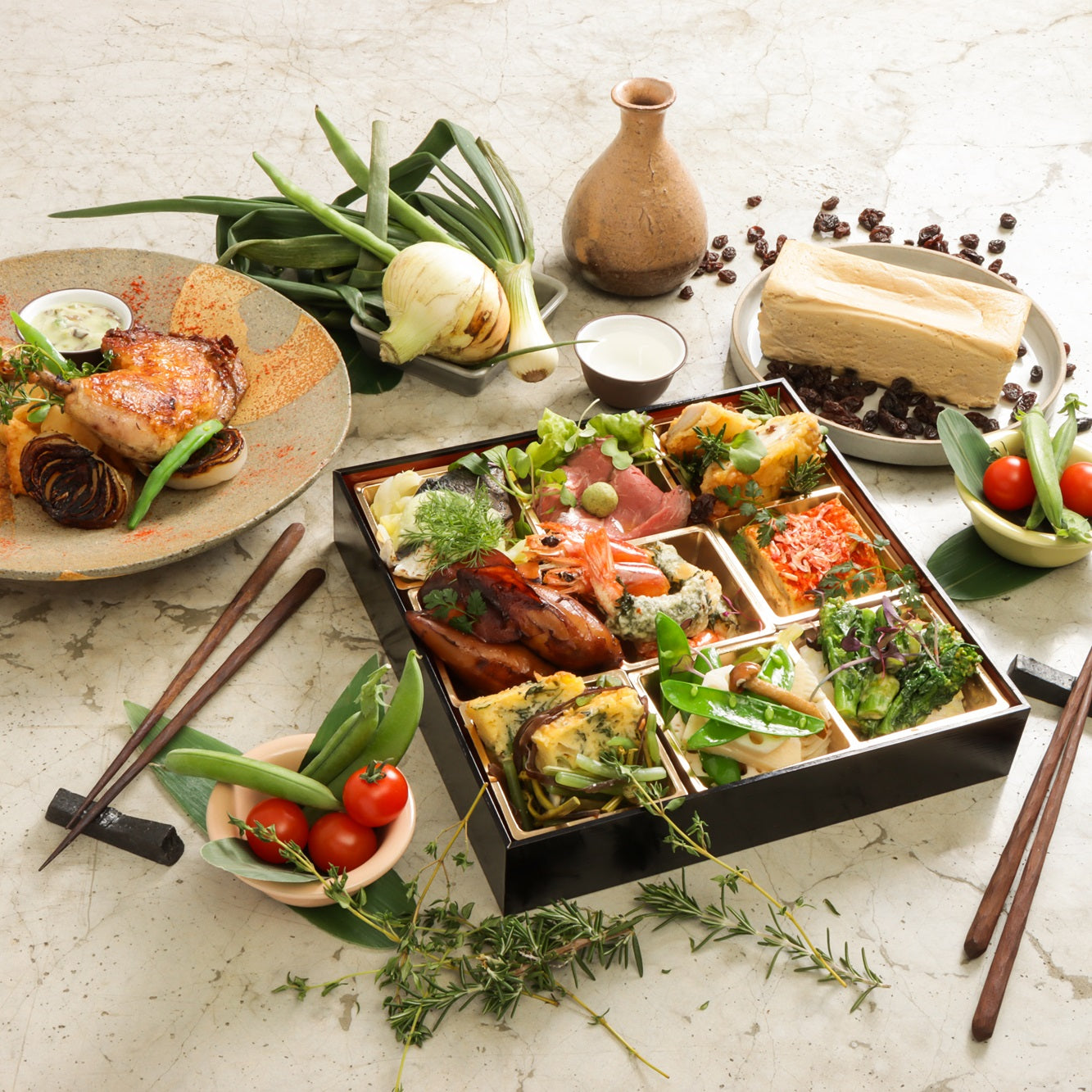 【Monthly collab box(月替わりコラボセット)】3月春の和創作フレンチと丹羽黒鶏の骨付き鶏もも肉のコンフィ・ドルチェセット