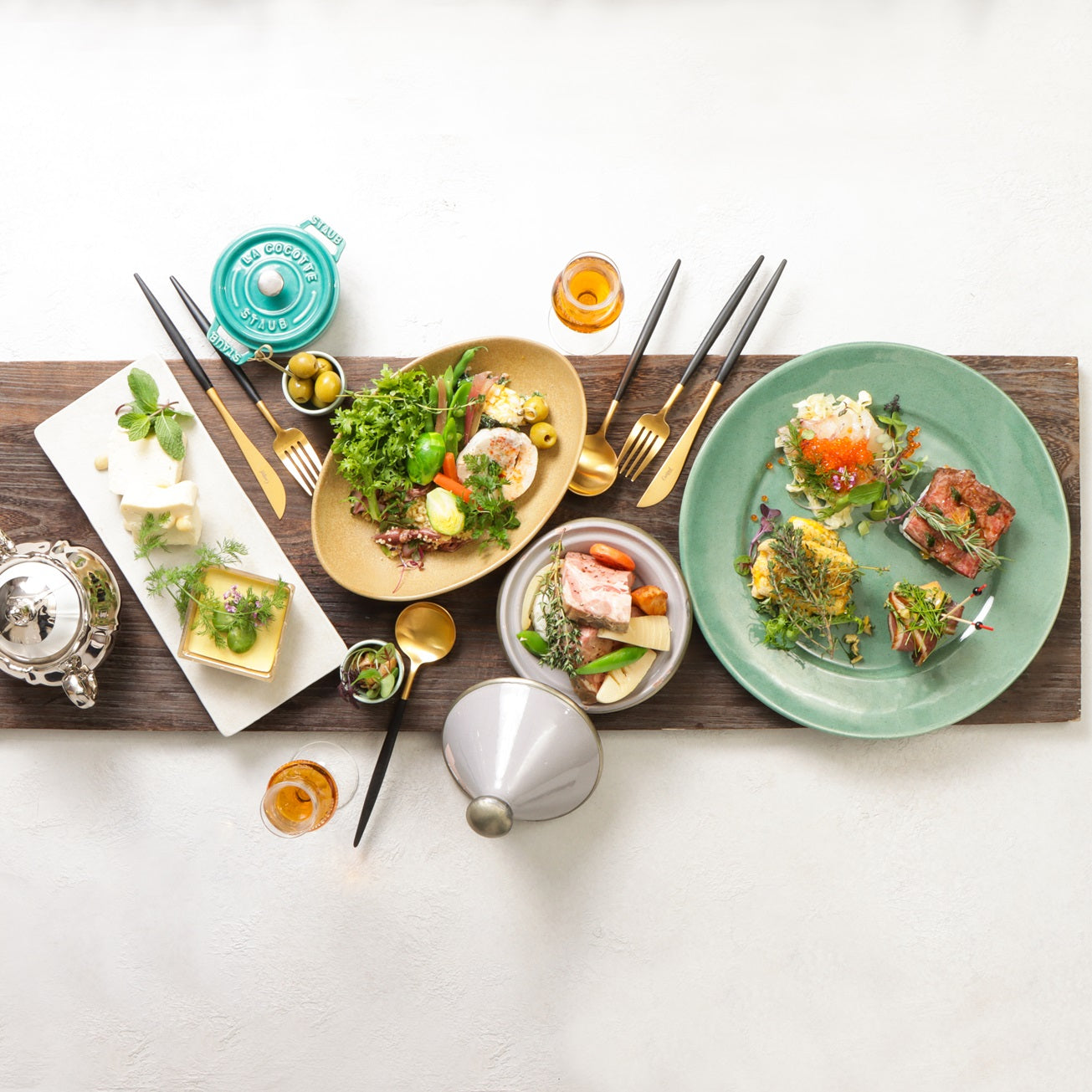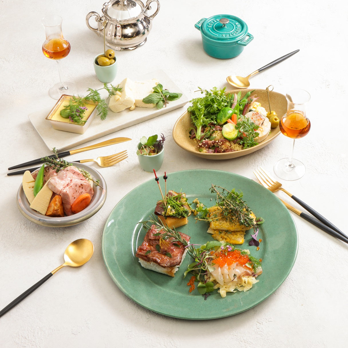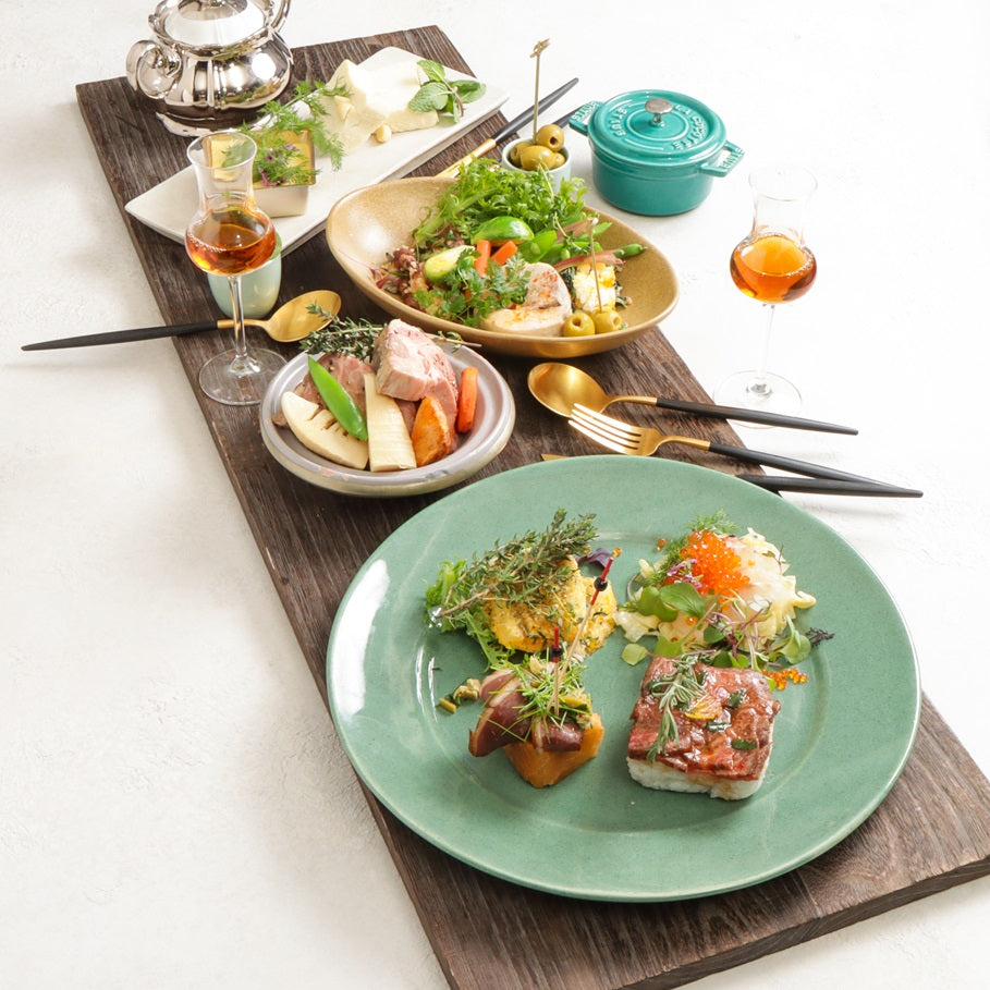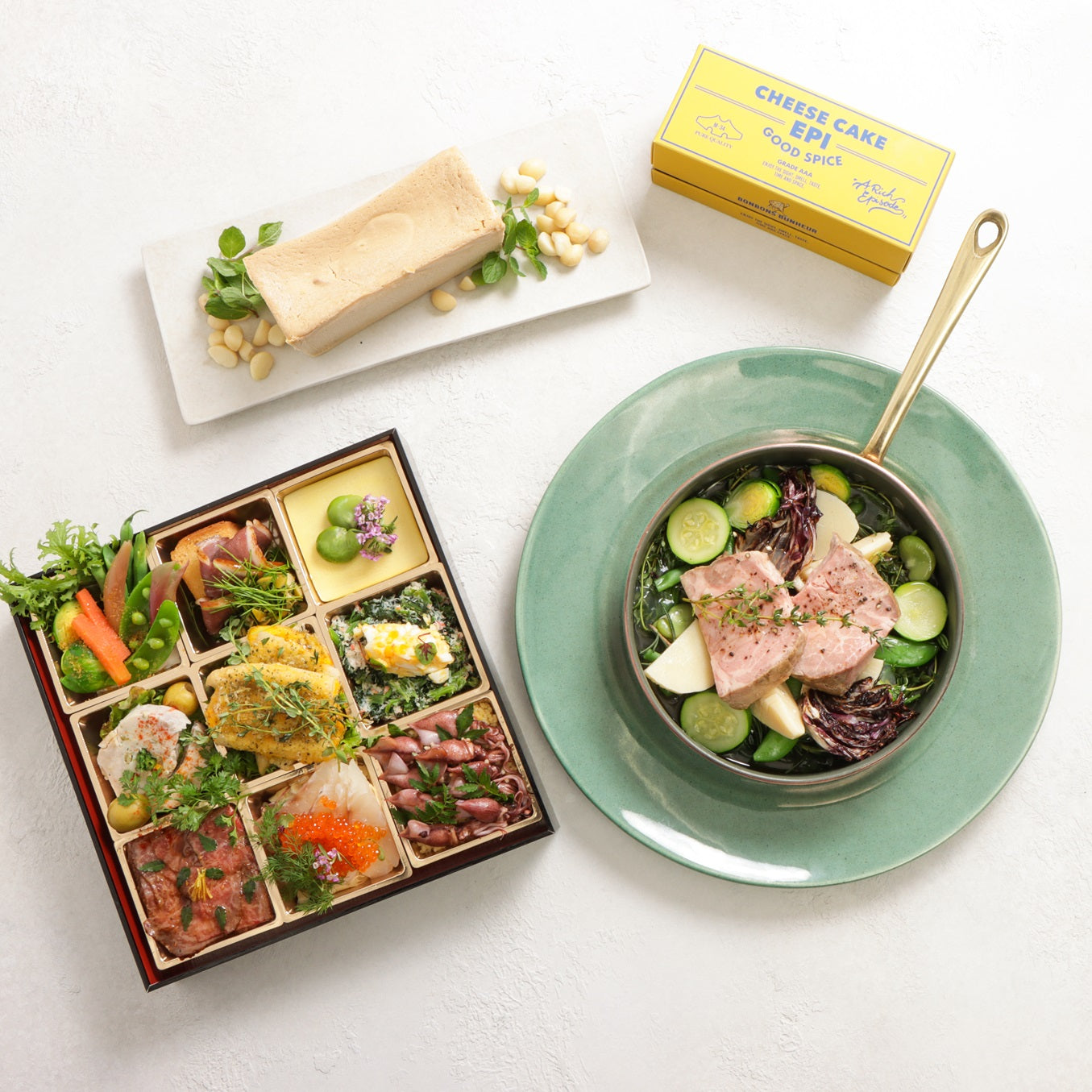 「和」を基調としたモダンフレンチケータリングUN-BE LABから生まれる月替わり「to-un-be」オードブルとCHEESECAKE「EPI」のドルチェセット。