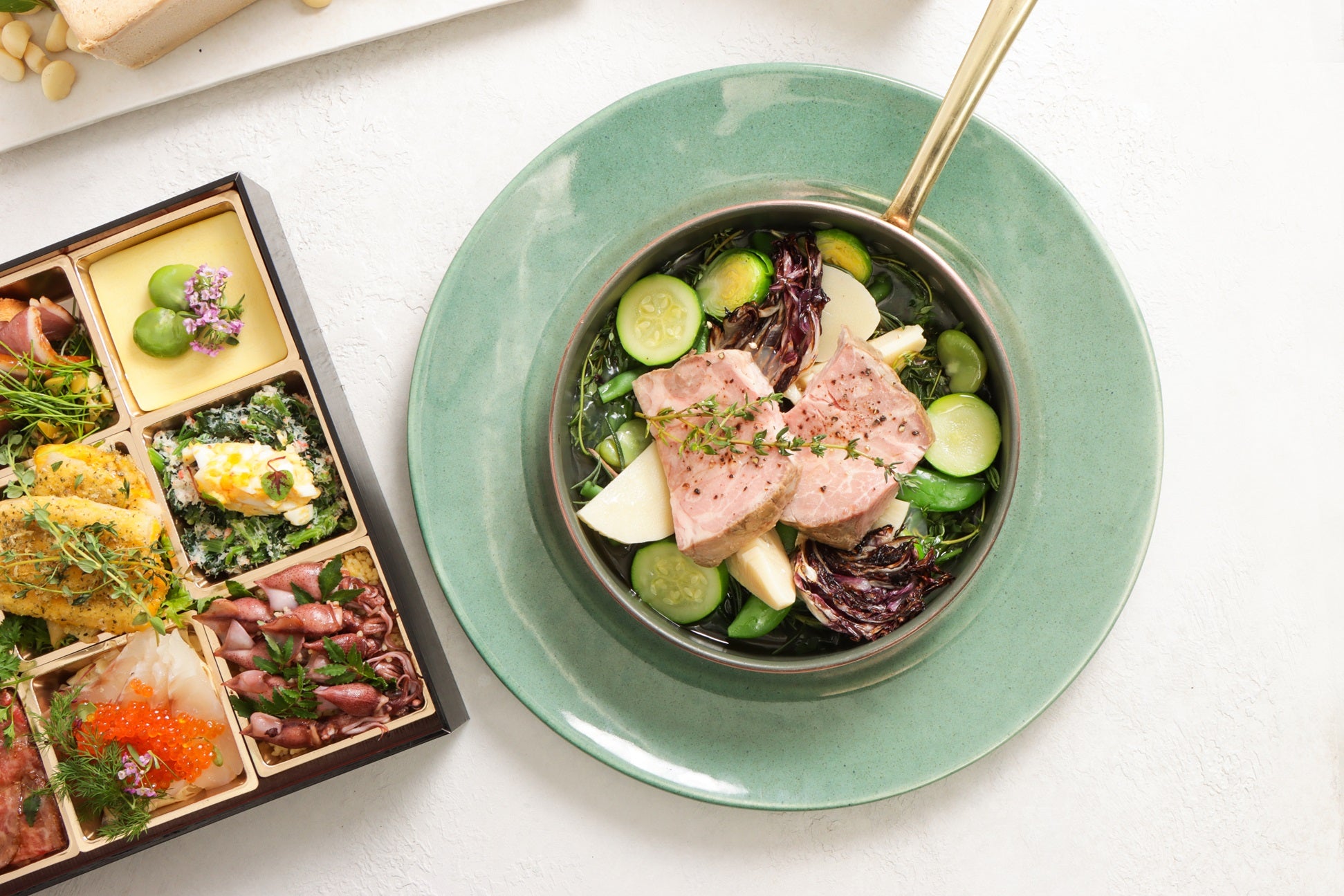 【Monthly collab box(月替わりコラボセット)】4月欧風「春の味覚」オードブルとメイン料理「仔羊と筍のブレゼ」・ドルチェセット