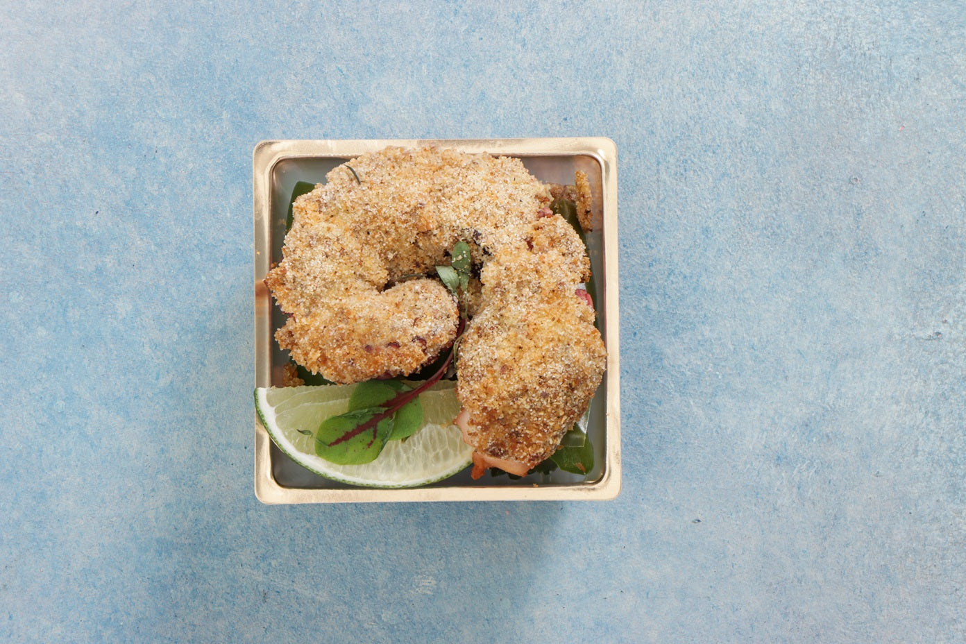 煮蛸の山椒セモリナ粉ロティ:柔らかく煮た蛸にセモリナパン粉を塗ってこんがりと焼き上げた前菜。山椒の風味プラス。