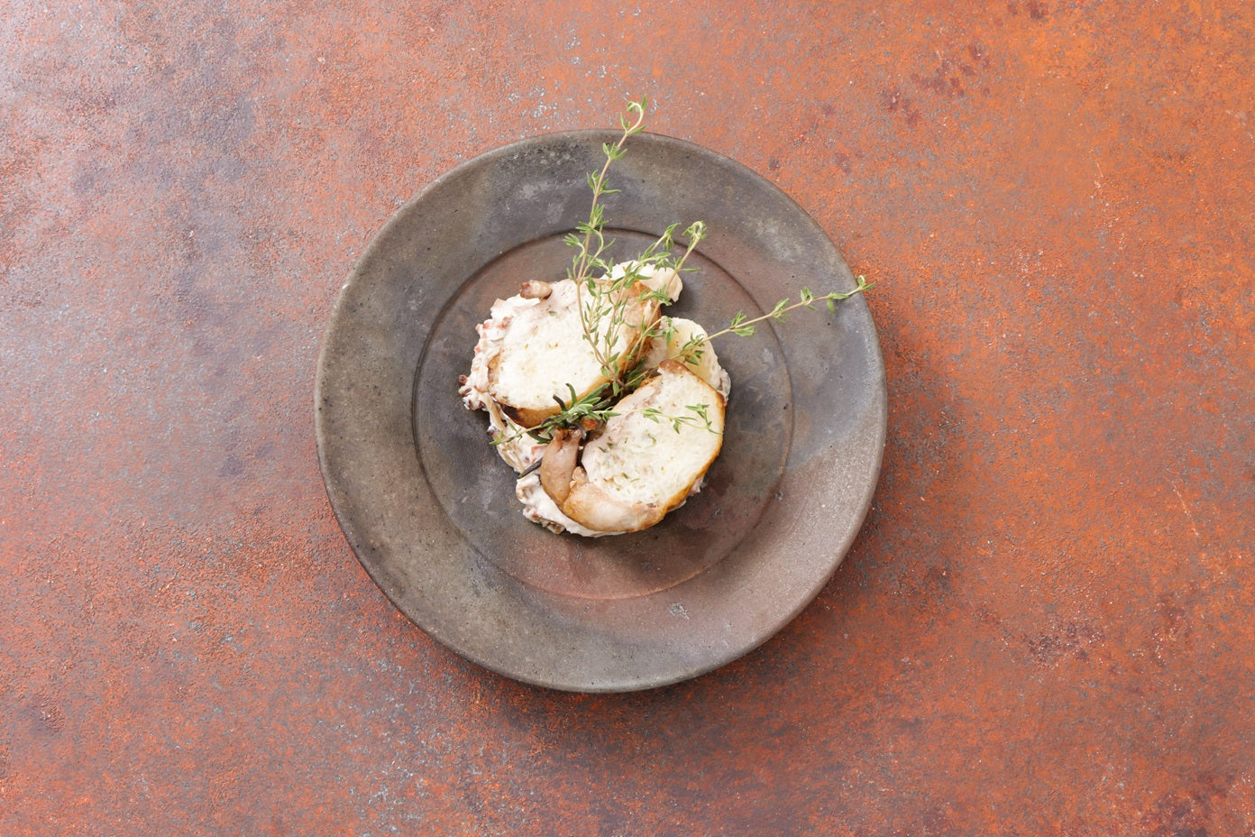 鶉(うずら)のファルシー クリームリゾット詰め 木の子クリームニョッキ