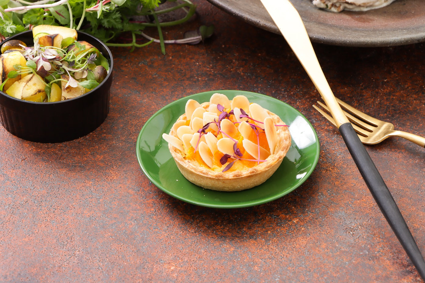 南瓜とアーモンドのタルト:シンプルな南瓜のキッシュ仕立て。ナッツの香りをまとわせて