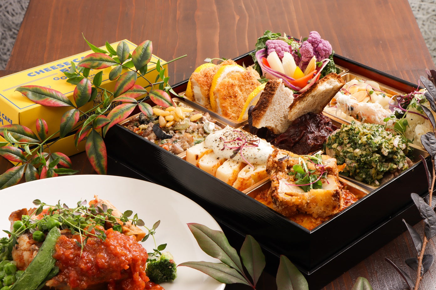 「和」を基調としたモダンフレンチケータリングUN-BE LABから生まれる月替わり「to-un-be」オードブルとCHEESECAKE「EPI」のドルチェセット。