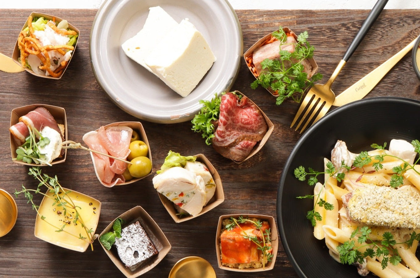 なお、スタッフが常駐し、お料理のセッティングやテーブルコーディネート、サーブ、撤収、ゴミ回収まで行うケータリングをご希望のお客様は、お問い合わせフォームよりご注文を承ります。(ケータリングはお料理総額100,000円以上~)お問い合わせフォームの「お問い合わせ種類」にて「注文に関するお問い合わせ」へチェックをいれ、詳細のご記入の上送信してください。